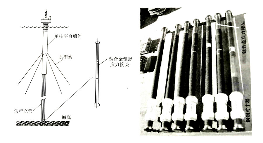 海上石油、天然氣開采用鈦主要有四大部件:隔水管、鉆管、錐形應(yīng)力接頭和井下作業(yè)流送管(盤管)。