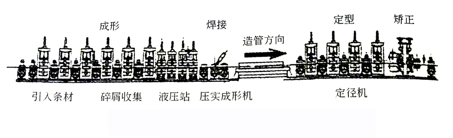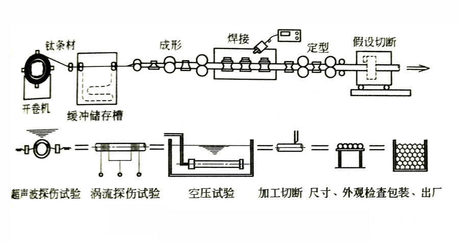 焊接管制造工藝包括:鈦條材成形→焊接一定型一切斷一探傷+空壓試驗一外觀檢查→包裝,如圖1所示。由于鈦的加工硬化小、回彈量大的緣故,在輥壓成形方面,要采用10機座左右的輥壓成形機,如圖2所示。鈦焊接管在輥壓成形機的成形,是采用雙彎曲花芯開放式的成形過程,如圖3所示。
