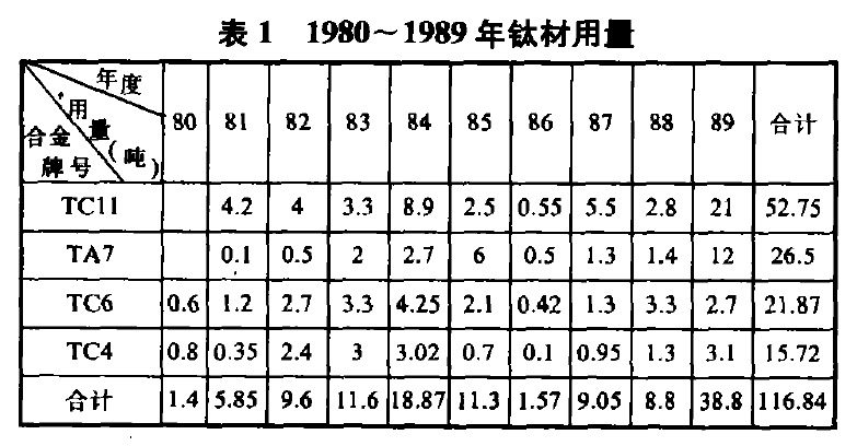 為適應鈦鍛件的開發(fā),工廠進行了相應的技術(shù)改造,建立了具有一定能力鈦鍛件生產(chǎn)線,并形成了批量生產(chǎn),為我部渦噴系列的發(fā)動機提供了除鈦葉片以外的整機鈦合金鍛件,為一些飛機提供了大型鈦合金結(jié)構(gòu)件。十年來,我廠生產(chǎn)的鈦鍛件為520批次,鈦材用量116.8噸,見表1。尤其是TC11鈦鍛件的開發(fā),幾年來共提供1170件壓氣機盤模鍛件,創(chuàng)產(chǎn)值1000余萬元;TA7鈦鍛件的開發(fā),自1982年以來,生產(chǎn)550件機匣殼體環(huán)形件及模鍛件,創(chuàng)產(chǎn)值400余萬元;仡欌伜辖疱懠_發(fā)的十年,不僅對航空產(chǎn)品更新?lián)Q代產(chǎn)生了引人矚目的作用,而且在提高企業(yè)經(jīng)濟效益方面收到了明顯的效果,而產(chǎn)品開發(fā)的本身則是依賴技術(shù)進步,依靠廠、所一體化的作用,依靠技術(shù)改造及產(chǎn)品的創(chuàng)優(yōu)。