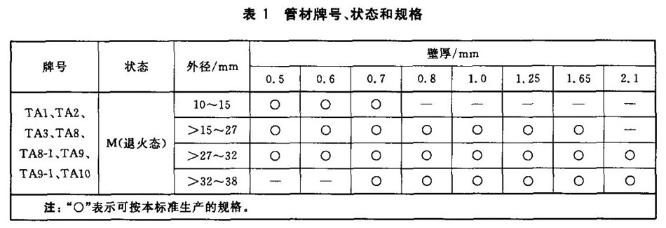 鈦及鈦合金焊接管的牌號、狀態和規格應符合表1的規定。