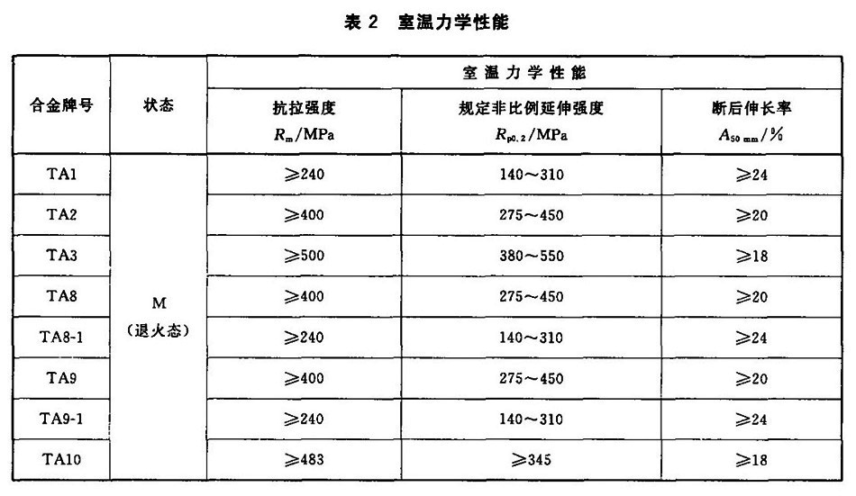 管材在供應狀態下的室溫力學性能應符合表2的規定。