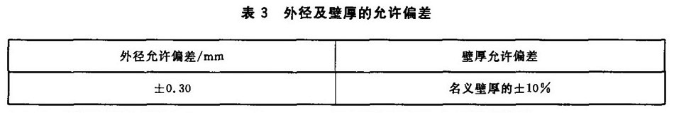 3.6.1 管材外徑和壁厚的允許偏差應符合表3的規定。管材的圓度不應超出外徑允許偏差,管材的壁厚允許偏差不適用于焊縫處,焊縫處的壁厚增厚允許偏差為±0.79mm。