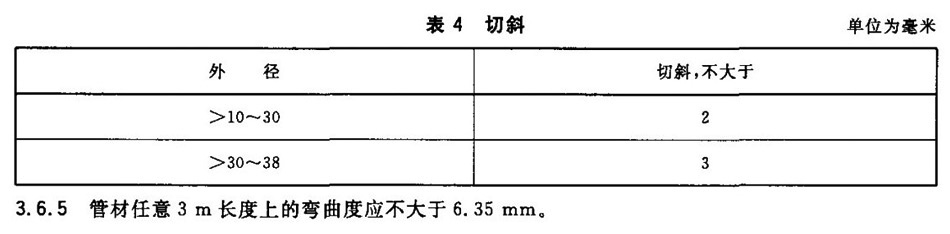 3.6.5 管材任意3m長度上的彎曲度應不大于6.35mm。