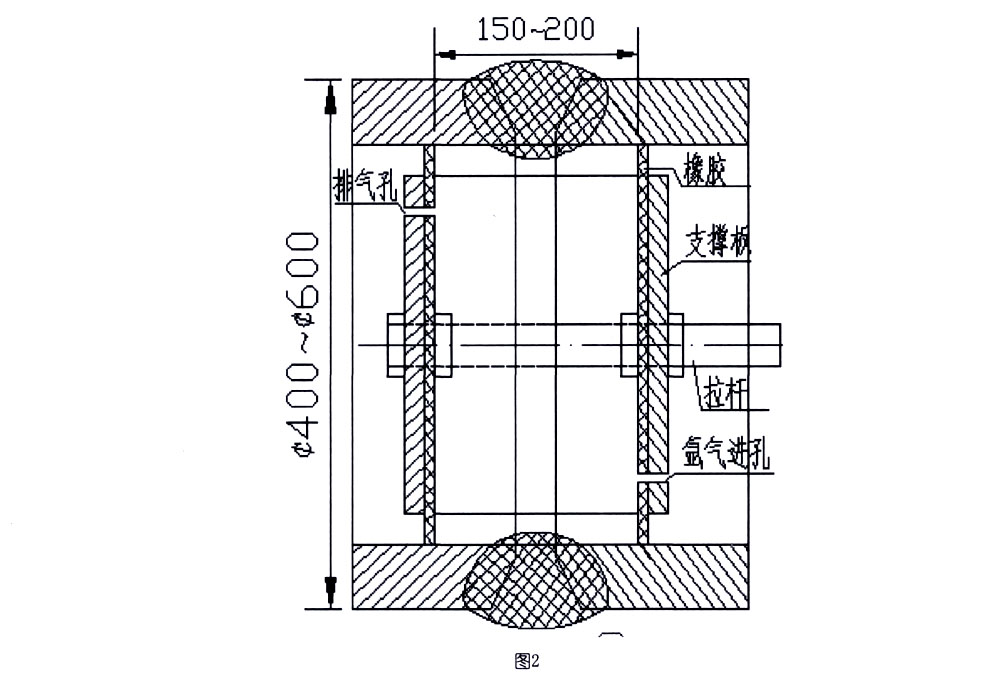 選擇封閉條件較好,通風設施比較齊全的施工廠房,開辟專用鈦管焊接場地,并用橡膠鋪設地面,操作人員腳穿鞋套,帶潔凈手套,用于組焊的焊接工作臺面工作前必須進行仔細擦拭,以減少污染;必須做到化學清洗后管件、焊絲放置時間不得超過2h,否則焊前必須重新清洗;焊接前首先在管內通35min氪氣后再進行焊接。對于管徑乏159mm的管件,為避免氪氣的浪費并增加焊接區保護效果,采取局部隔離充氪氣保護措施,結構簡圖見圖2。為加強焊縫背面保護效果,對點固后尚未焊接的焊口表面粘貼膠帶紙。
