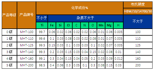 海綿鈦等級和化學成份