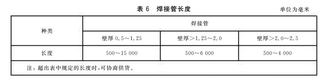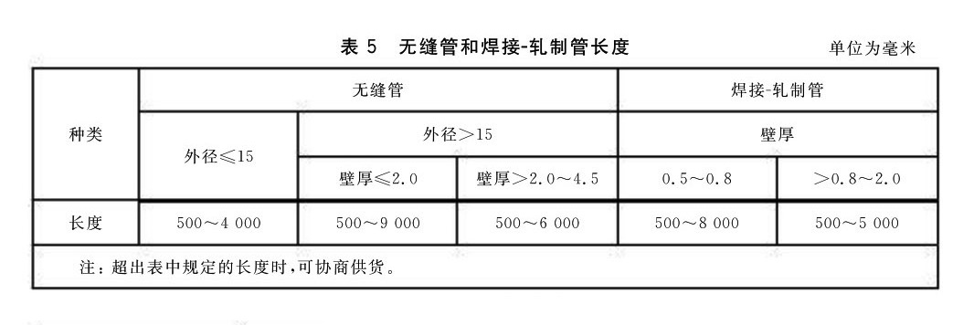 3.2.2 管材的長(zhǎng)度應(yīng)符合表5和表6的規(guī)定。