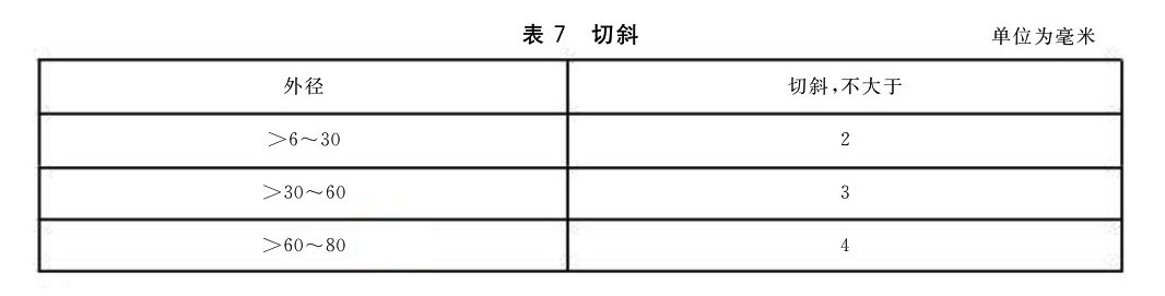 3.2.4 管材兩端應(yīng)切平整,不應(yīng)有毛刺,切斜應(yīng)符合表7的規(guī)定。