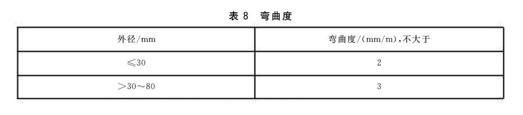 3.2.5 管材的彎曲度應(yīng)符合表8的規(guī)定。