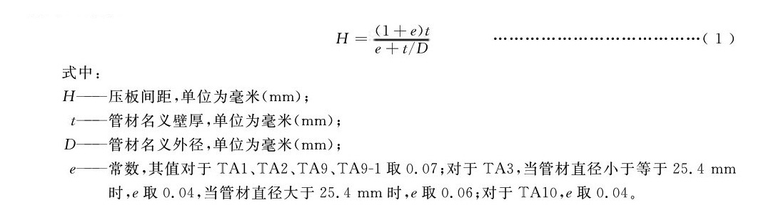 3.5.1.1管材應(yīng)進(jìn)行壓扁試驗(yàn).壓至規(guī)定的間距H時(shí),管材表面不應(yīng)出現(xiàn)裂紋,壓板之間的距離H按式(1)計(jì)算: