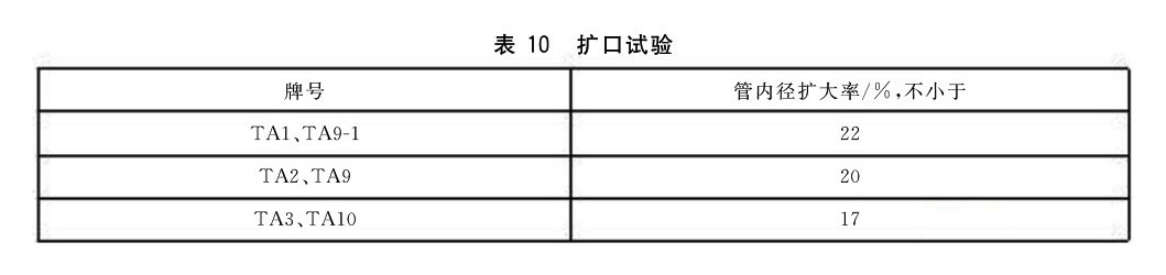 管材應(yīng)進(jìn)行擴(kuò)口試驗(yàn),擴(kuò)口采用頂芯錐度60°的工具,擴(kuò)口后試樣內(nèi)徑的擴(kuò)大值符合表10的規(guī)定時(shí),試樣不得出現(xiàn)裂紋。