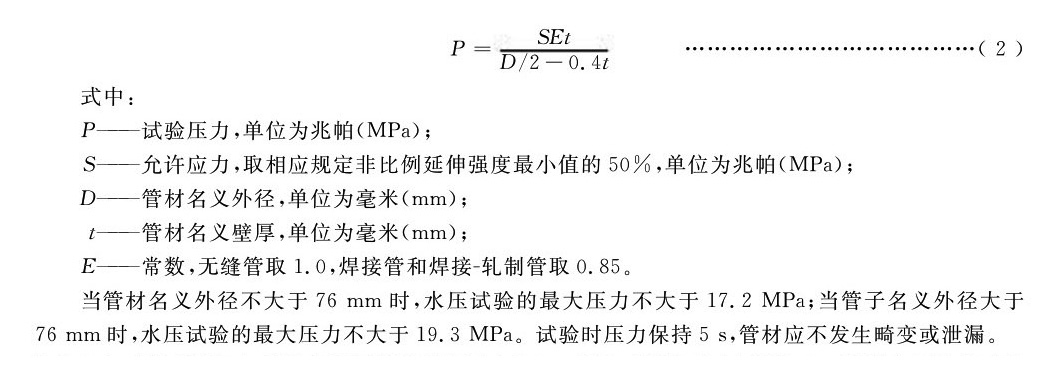 3.5.3.2 液壓試驗(yàn)時(shí),需方選定的試驗(yàn)壓力度在合同中注明。合同中未注明時(shí),試驗(yàn)壓力按式(2)