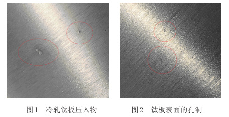由于冷軋鈦板的冶金生產流程長、規格薄,因此容易出現諸如線狀缺陷、孔洞、夾雜、翹皮、氣泡等缺陷。統計發現,表面缺陷主要有金屬與非金屬壓入物類、孔洞類、機械損傷類、表面裂紋類、油污類和起皮類等。因此有必要對冷軋板材的表面缺陷形成原因進行分析,進而找出相應的預防方法,減少或消除表面缺陷,提高冷軋板產品質量。