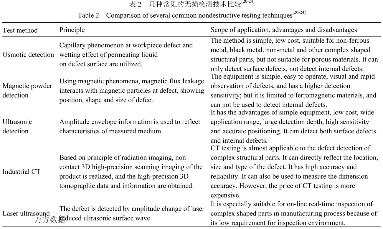 表 2 列出幾種常見的無損檢測技術(shù)比較。
