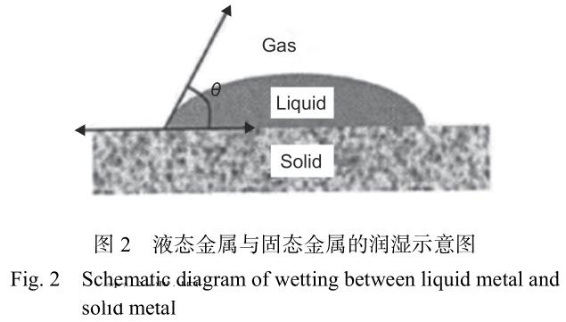 近年來,越來越多的學(xué)者對球化現(xiàn)象形成原因進(jìn)行了大量的研究,但各持不同的意見。其中“液態(tài)金屬與固態(tài)表面的潤濕問題”的說法較為普遍接受[26]。球化根據(jù)尺寸不同可分為大尺寸球化和小尺寸球化,對大尺寸球化的形成原因歸結(jié)于液-固潤濕問題。圖 2 所示為液態(tài)金屬與固態(tài)金屬的潤濕示意圖,當(dāng)熔融金屬液均勻鋪展時(shí),潤濕角θ <90°,固液金屬潤濕性良好,不會出現(xiàn)球化,當(dāng)金屬液很難鋪展于固態(tài)表面時(shí),θ > 90°,固液金屬潤濕性差,產(chǎn)生球化反應(yīng)。對于小尺寸球化的成因,則認(rèn)為是加工過程中發(fā)生液滴飛濺,在熔道或熔道周圍凝固成金屬球,因?yàn)榻饘僖猴w濺相對較少,所以金屬球的尺寸也較小。Sallica 等[12]通過研究 SLM成形件 Ti-6Al-4V 的微觀組織,發(fā)現(xiàn)過高的激光功率會減小熔融金屬的表面能,并導(dǎo)致球化現(xiàn)象的產(chǎn)生。張曉博[27]研究了加工環(huán)境對球化現(xiàn)象的影響,認(rèn)為成形氣氛中的氧元素容易與熔融金屬液發(fā)生反應(yīng),形成一層致密的氧化物薄膜,該薄膜并不利于金屬液與固體基底潤濕、粘合,容易導(dǎo)致球化的產(chǎn)生,且球化現(xiàn)象隨氧含量的增加,效果越明顯;他還研究了工藝參數(shù)對球化現(xiàn)象的影響,認(rèn)為激光功率過高,會出現(xiàn)“飛濺”,導(dǎo)致熔道間的金屬球大量出現(xiàn),球化現(xiàn)象明顯;掃描速率過快,激光在粉末上停留的時(shí)間較短,金屬液溫度低,流動性及潤濕性差導(dǎo)致球化現(xiàn)象明顯。沈以赴等[15]認(rèn)為球化是由于液相表面張力大、黏度高,或熔融粉末與未熔化的粉末顆粒和基板未發(fā)生浸潤等的影響下產(chǎn)生,進(jìn)一步分析表明,激光快速成形過程中的氧氣是導(dǎo)致球化的直接原因。Gusarov 等[28]借助 Plateau-Rayleigh 毛細(xì)不穩(wěn)定理論[29]指出:球化現(xiàn)象與熔池的幾何形狀密切相關(guān),在二維層面上,熔池長度與寬度的比值大于 2.1 時(shí),容易出現(xiàn)球化現(xiàn)象。