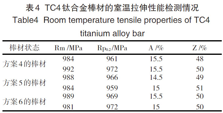 棒材室溫拉伸性能檢測結果如表4所示,采用方案4、5、6 矯直的棒材的室溫拉伸性能無明顯差異。