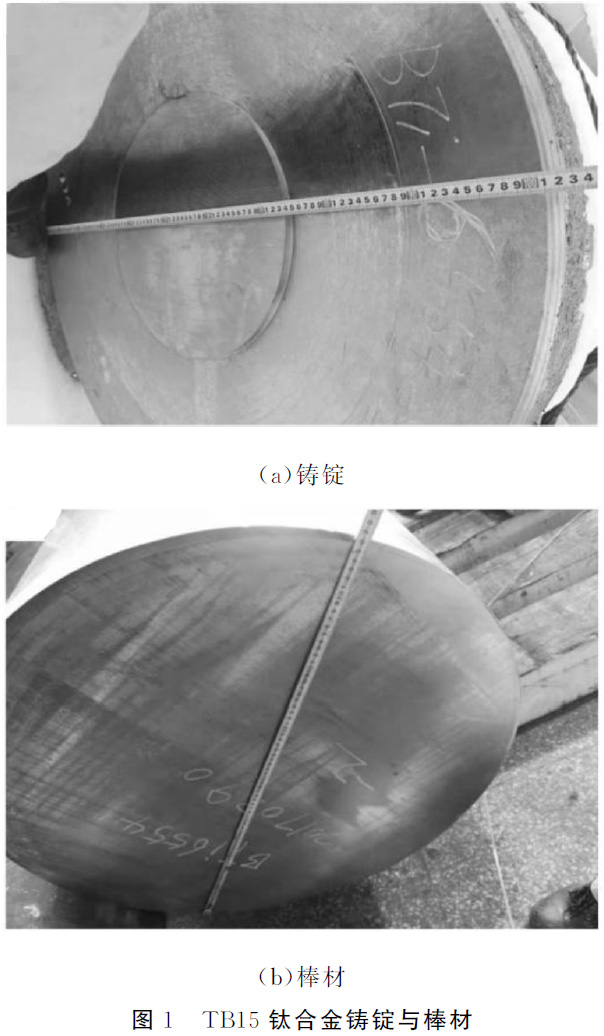 雖然目前對該合金做了較多的研究,但均以小規(guī)格棒材研究為主,對大規(guī)格棒材的研究鮮有報道,故本文選取直徑為750mm的超大規(guī)格TB15棒材,結(jié)合該合金的生產(chǎn)制造工藝,并制定合理的熱處理制度,以實現(xiàn)該合金強塑性的合理匹配,為制備大型飛機結(jié)構(gòu)件及重型直升機結(jié)構(gòu)件打下堅實基礎,進而推動航空工業(yè)發(fā)展。