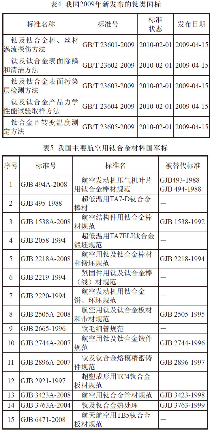 另外,2009年4月有5項(xiàng)關(guān)于鈦及鈦合金方法類的GB發(fā)布,已于2010年2月1日實(shí)施(見表4)。
