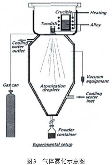 之后日本住友Sitix采用相似方法建立了年產(chǎn)60t的氣體霧化裝置,并于1994年投入生產(chǎn)[18]。自此,采用氣體霧化制備鈦合金粉末實現(xiàn)了小規(guī)模工業(yè)化生產(chǎn),但是其生產(chǎn)成本較高。