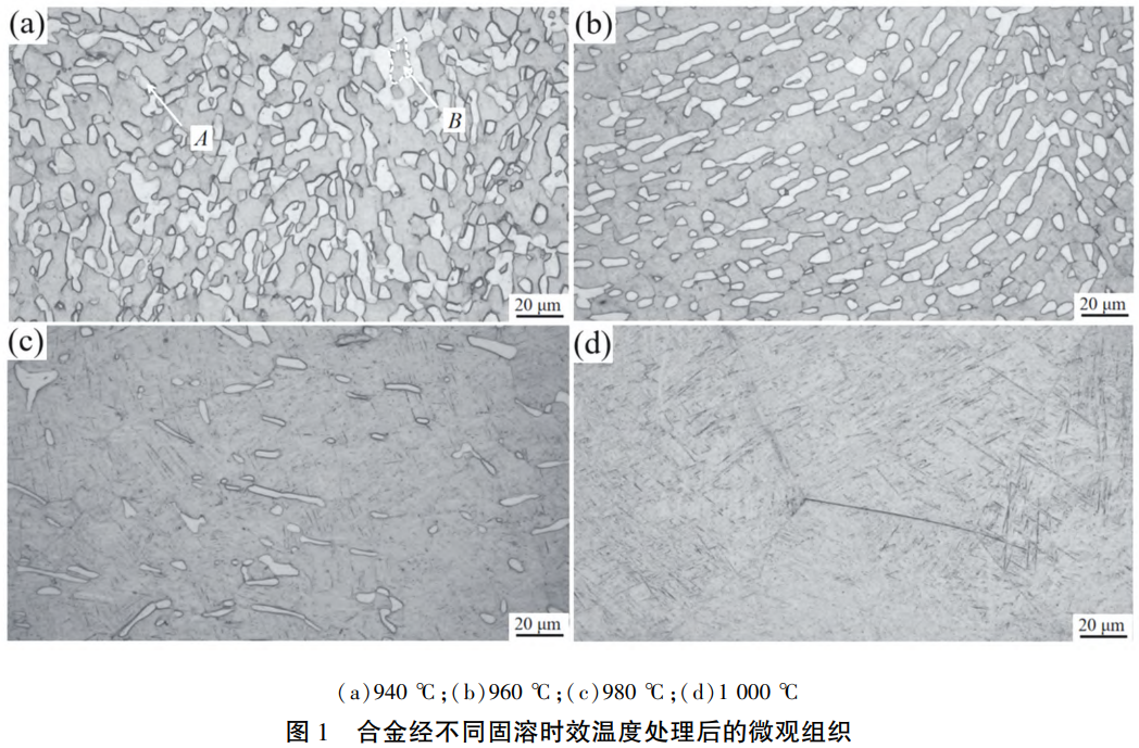 在固溶階段,加熱過程會使得合金中的溶質元素溶解到β相中。這個過程有助于溶質元素的均勻分布,并為后續析出過程創造條件。冷卻過程會將固溶處理后的合金快速冷卻到室溫,這個過程有助于形成過飽和的固溶體,為次生α相的析出提供了條件[12]。
