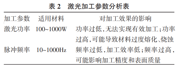 該技術(shù)適用于碳纖維復(fù)合材料、鈦合金以及耐熱合金等,如表 2 所示。激光加工的效率極高,能在短時間內(nèi)完成大規(guī)模的加工任務(wù),且具有較高的精度與較小的熱影響區(qū),從而確保了工件在加工后形變小且精確度高。此外,它還能夠?qū)崿F(xiàn)細(xì)微復(fù)雜的加工需求,特別適合于制造需要高度精密和復(fù)雜結(jié)構(gòu)的部件。然而,值得注意的是,由于激光加工設(shè)備的價格較高,這成為限制其更廣泛使用的一個重要因素,特別是對于資金有限的小型企業(yè)而言,高昂的成本可能會構(gòu)成障礙。