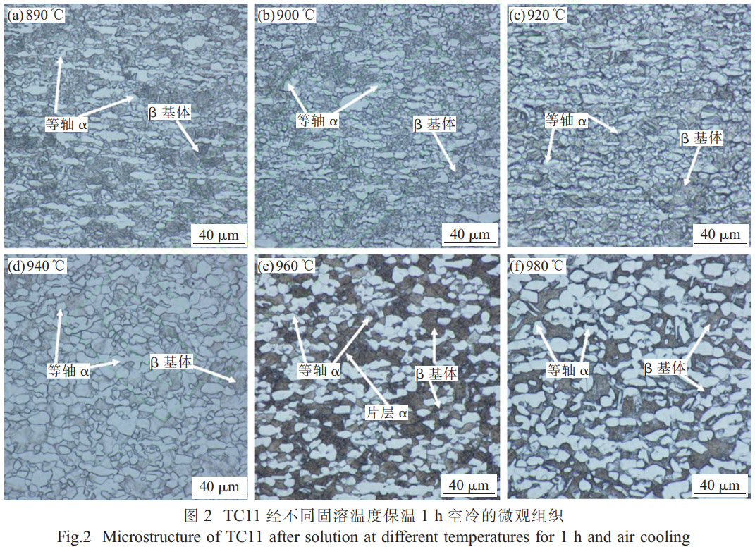 (1)溶溫度調(diào)控初生α相含量:隨固溶溫度從940℃升至980℃,初生等軸α相體積分?jǐn)?shù)下降,從69.8%降至37.3%。