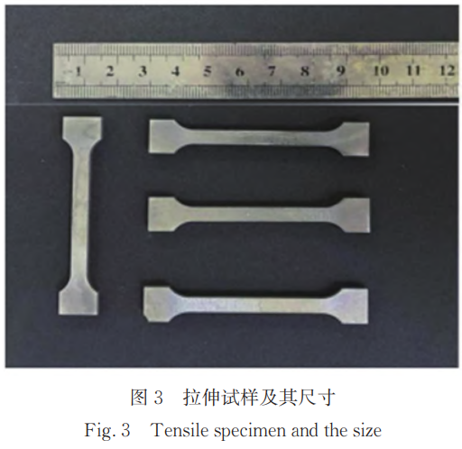 實驗采用SHIMADZU拉伸試驗機。由TC4鈦合金板上切割的拉伸試樣及其尺寸如圖3所示。首先對拉伸試樣進行不同冷卻方式的固溶處理,再使用400#砂紙將未處理的初始試樣和固溶處理好的試樣進行研磨,然后在室溫條件下進行拉伸試驗,應變速率為0.001s-1。將固溶處理后的拉伸試樣進行500℃(3h)、550℃(3h)、600℃(3h)的時效處理,空冷后對其表面進行研磨。在室溫下進行三組拉伸試驗,應變速率為0.001s-1。