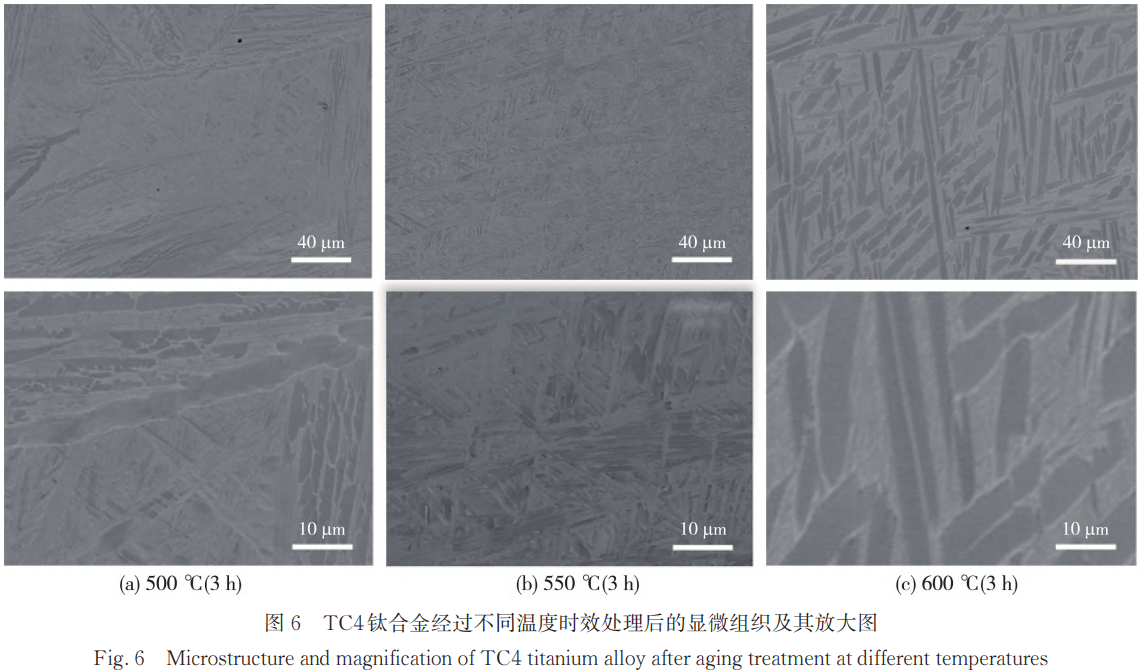 將固溶處理(水冷)的TC4鈦合金試樣在500℃、550℃和600℃下進行3h的時效處理,得到的顯微組織如圖6所示。