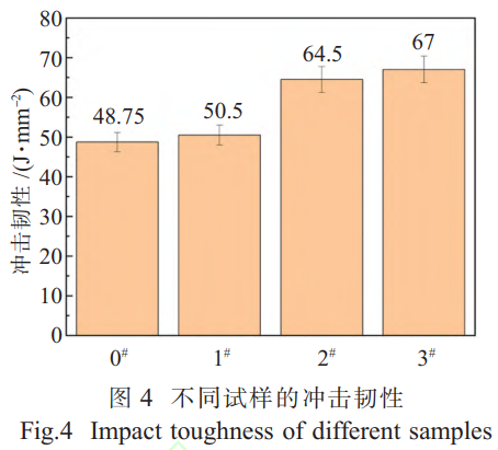 (2)與未處理試樣相比,隨著電磁沖擊峰值電流密度的增加(108.6、120.6和132.6A/mm2),TC11鈦合金試樣的沖擊韌性分別提升了3.5%、32.3%和37.4%。