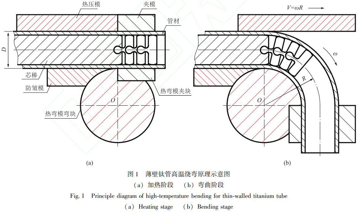 當前,以鈦合金為代表的輕質高強材料、空腔薄壁整體結構不僅能滿足航空航天領域對于超高/低溫、大載荷、超/失重等交變、極端苛刻飛行任務考核需求,更能顯著提升產品整體性能,從而在航空航天產品中得到廣泛應用。高強薄壁鈦管同時具備了輕質高強材料、空腔薄壁整體結構的雙重特點,在航空航天管路系統設計制造領域得到高度關注。而鈦管屬于難加工材料,需要加熱才能彎曲成形,導致其在彎曲過程中存在熱變形行為復雜和成形缺陷難控的問題,給高強薄壁鈦管產品加工帶來了全新的挑戰。