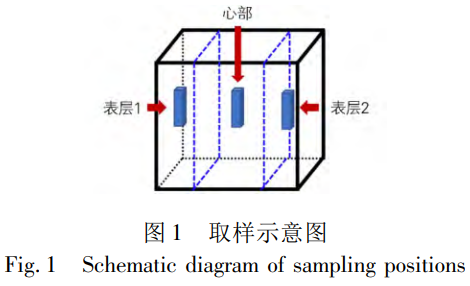 在低溫退火鈦合金鍛件基礎上,切取多個規格為400 mmx100 mm的試塊,分別在910、920、930和940℃高溫退火2h后空冷,將不同溫度退火處理的鈦合金鍛件分別記為2、3、4、5號鍛件。采用CMT6103萬能力學試驗機進行拉伸測試,依據GB/T228.1-2021《金屬材料拉伸試驗第1部分:室溫試驗方法》執行。為研究鍛件不同位置性能和組織的均勻性,拉伸試樣分別在表層1,心部,表層2處取樣,取樣示意圖如圖1所示,其中試樣軸向方向與取樣方向一致。為避免測試隨機性,每種鍛件不同位置各取2個平行試樣進行測試。之后對不同的TC4鈦合金鍛件采用蔡司顯微鏡進行顯微組織觀察。金相試樣經300、800、1500、2000號砂紙打磨后進行拋光,采用HF:HNO3:H2O=1:3:9的腐蝕液進行腐蝕,腐蝕時間為5~10s。采用Image pro plus圖像分析軟件對初生α相尺寸及體積分數進行統計,對5張圖進行統計得到平均值。