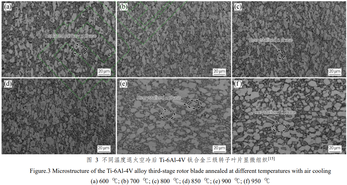 如前所述,Ti-6Al-4V鈦合金的退火工藝可以根據再結晶溫度和β轉變溫度劃分為:去應力退火、兩相區退火以及β區退火。